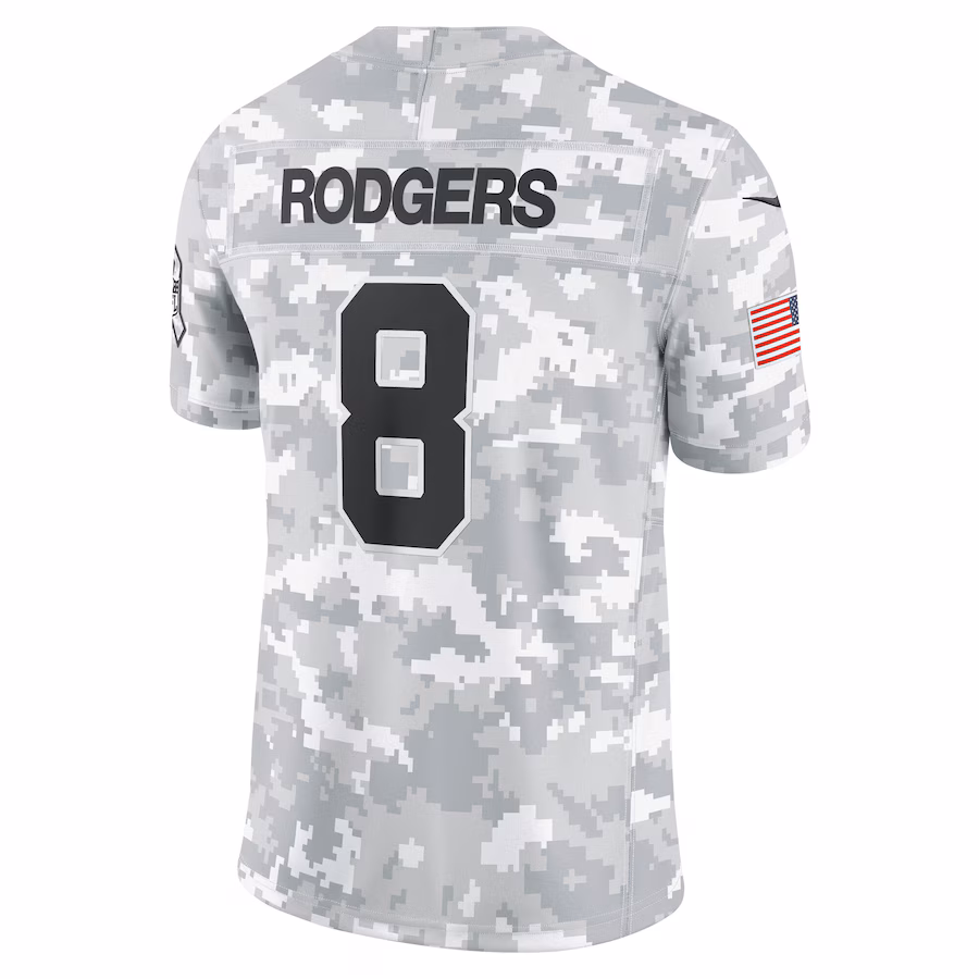 Aaron Rodgers New York Jets Nike 2024 Salute to Service Limited Jersey – Arctic Camo