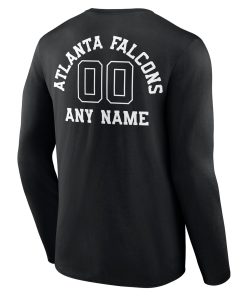 We want fans to celebrate their fandom by customizing and personalizing certain products. For these customizable products, including jerseys, we invite customers to tell us how they would like their preferred name or other text to appear by typing that text into the field indicated. However, just because a customer is able to type proposed customization text into the field and is able to complete the order through the website, not all proposed customization text will be accepted. Please note, Fanatics may reject and cancel any customization order for any reason, including for messages that are deemed offensive or inappropriate. Show your Atlanta Falcons pride all season long with this Personalized Name & Number Monochrome Long Sleeve T-Shirt. This cozy tee is crafted from soft, breathable fabric for all-day comfort. The bold graphics are the perfect way to demonstrate your Atlanta Falcons fandom, whether you’re at the game or just running errands around town.