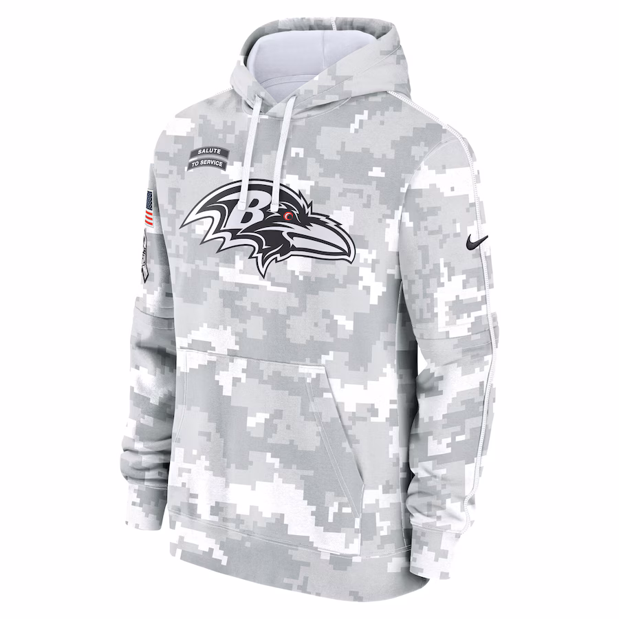 Baltimore Ravens Nike 2024 Salute to Service Club Fleece Pullover Hoodie – Arctic Camo