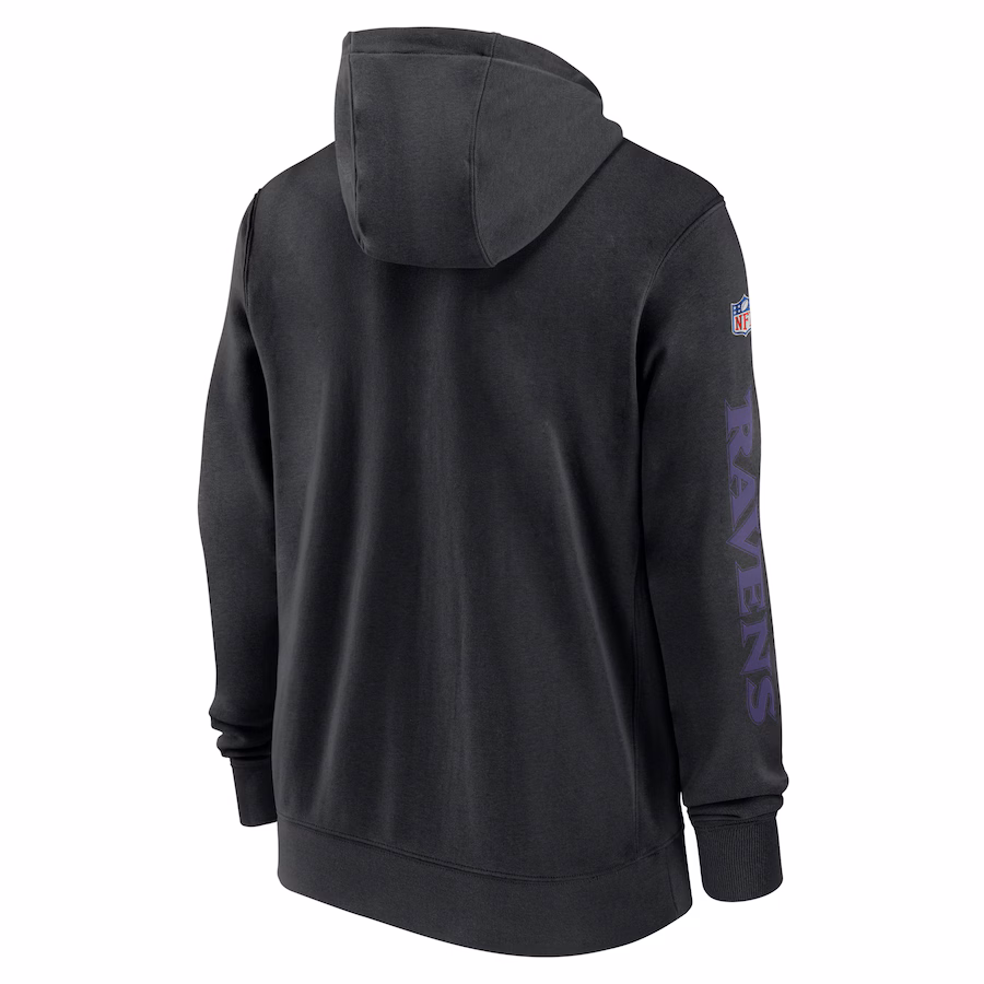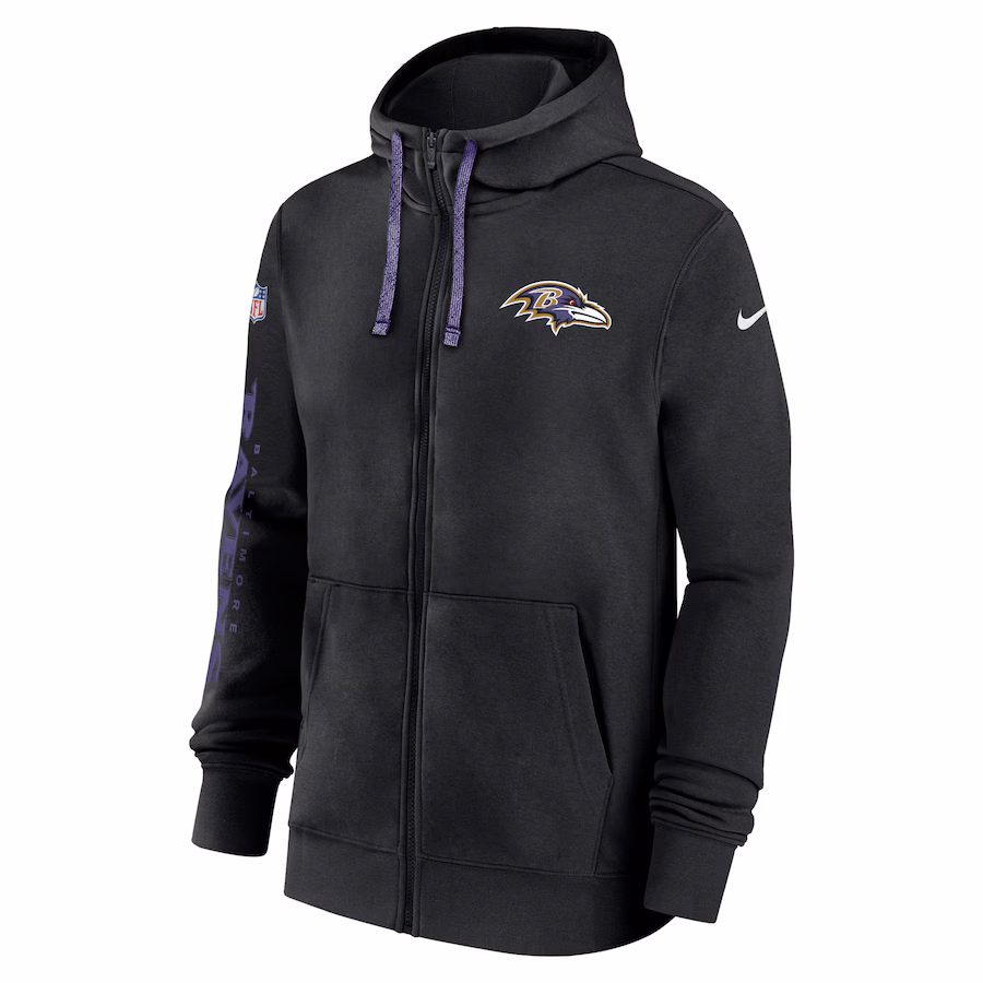 Baltimore Ravens Nike 2024 Sideline Club Full-Zip Hoodie – Black