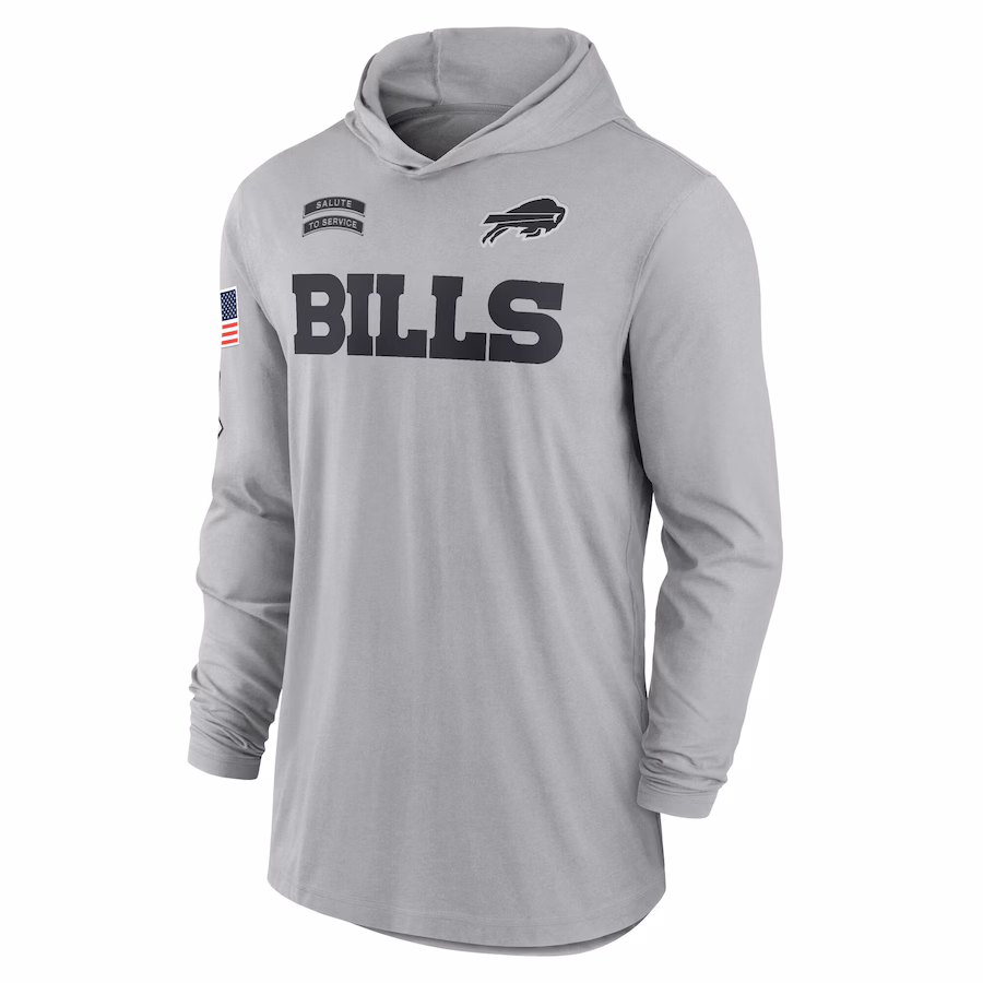 Buffalo Bills Nike 2024 Salute to Service Lightweight Performance Long Sleeve Hooded T-Shirt – Gray