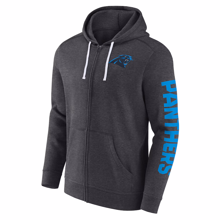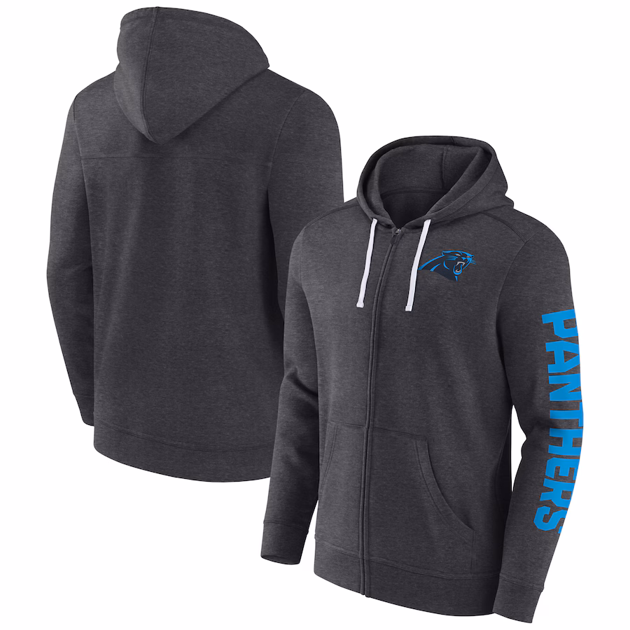 Carolina Panthers Fanatics Down and Distance Full-Zip Hoodie – Heather Charcoal