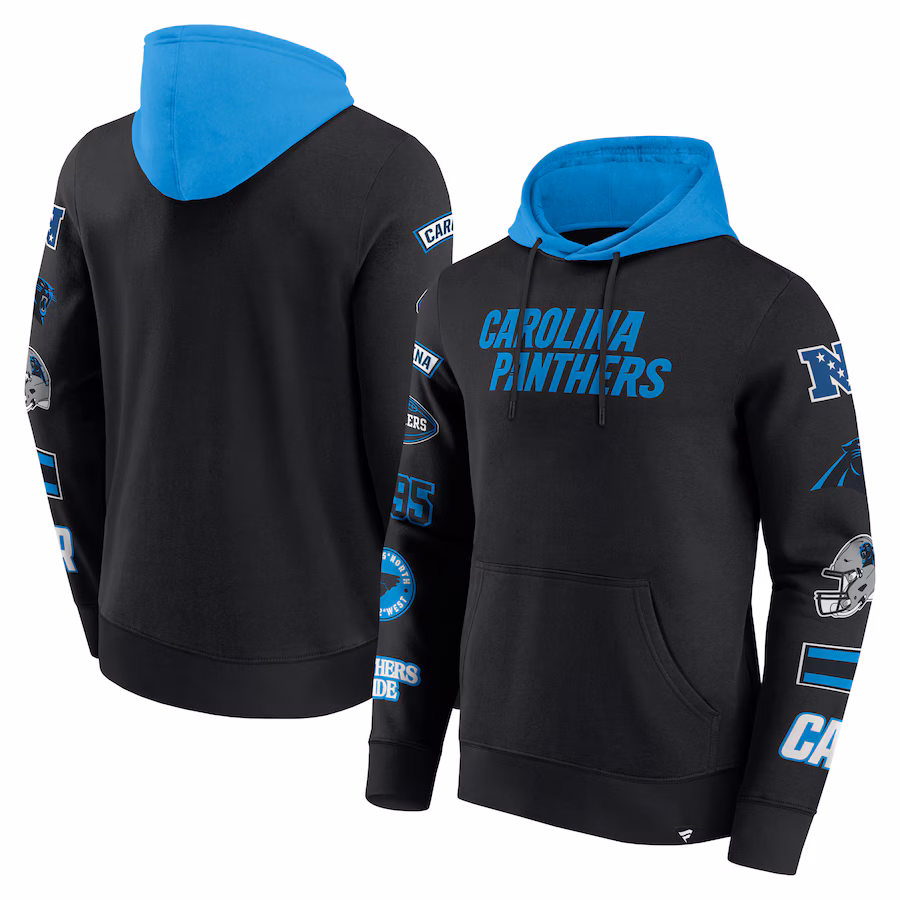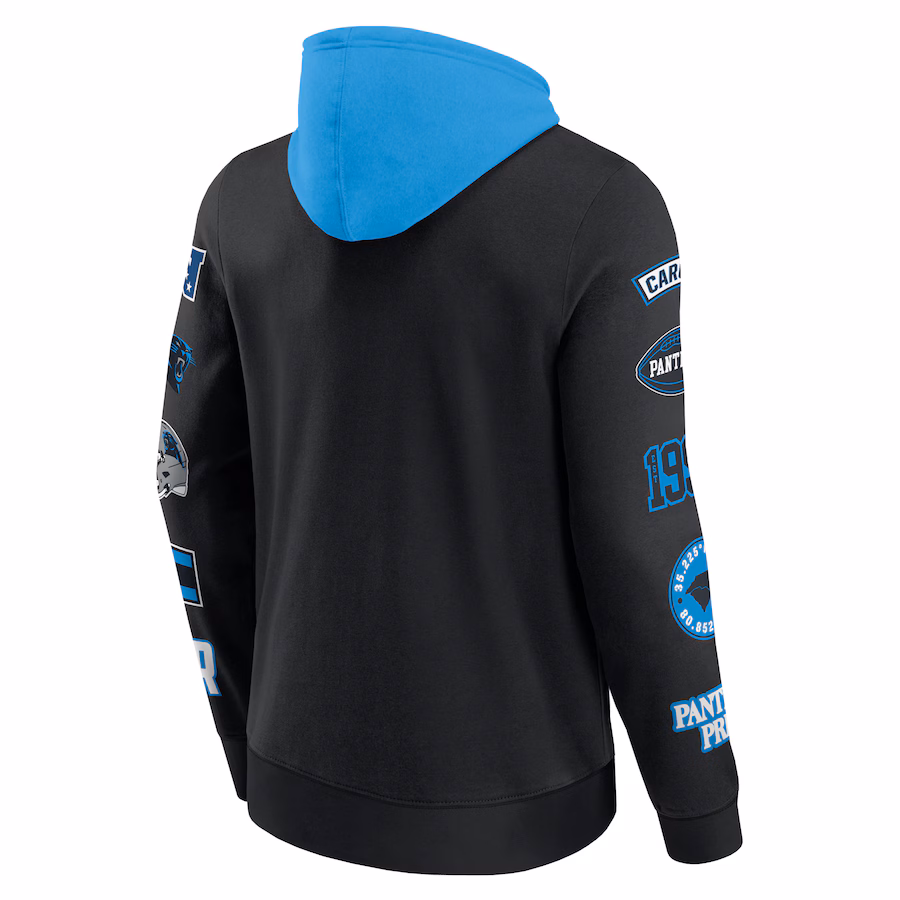 Carolina Panthers Fanatics Patched Out Pullover Hoodie – Black/Blue