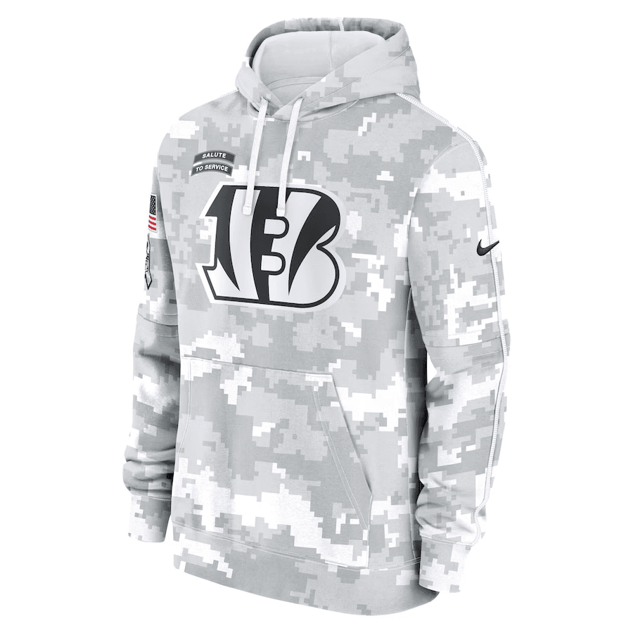 Cincinnati Bengals Nike Youth 2024 Salute To Service Pullover Hoodie – White/Gray