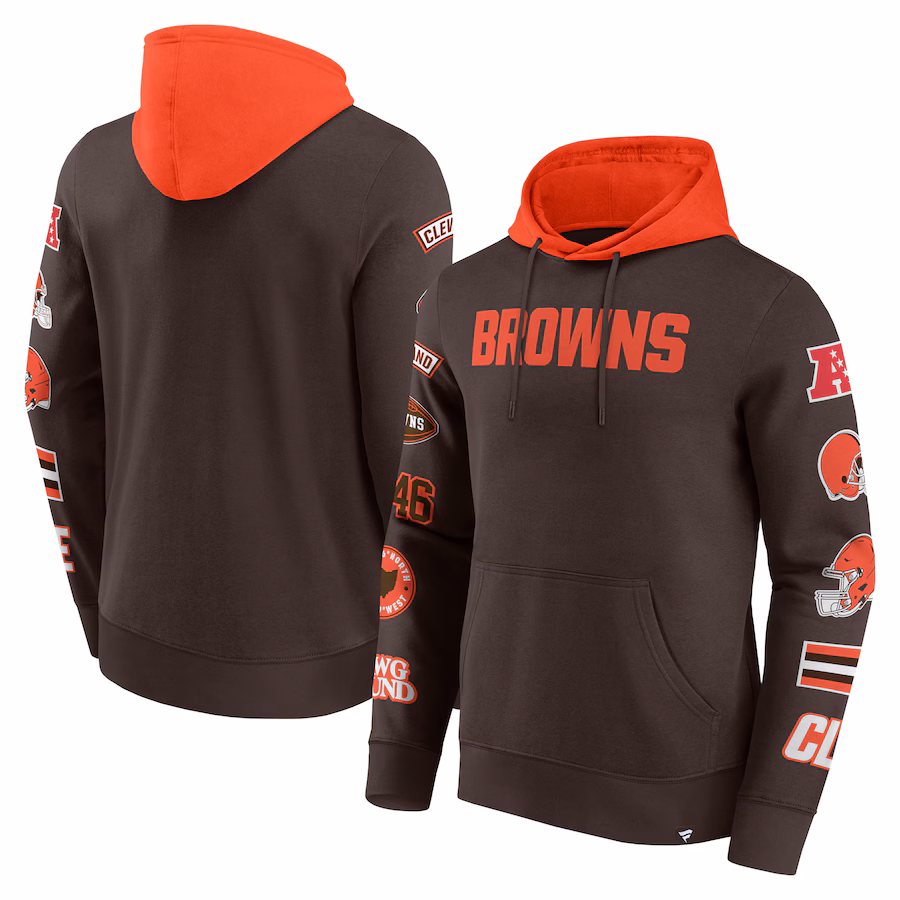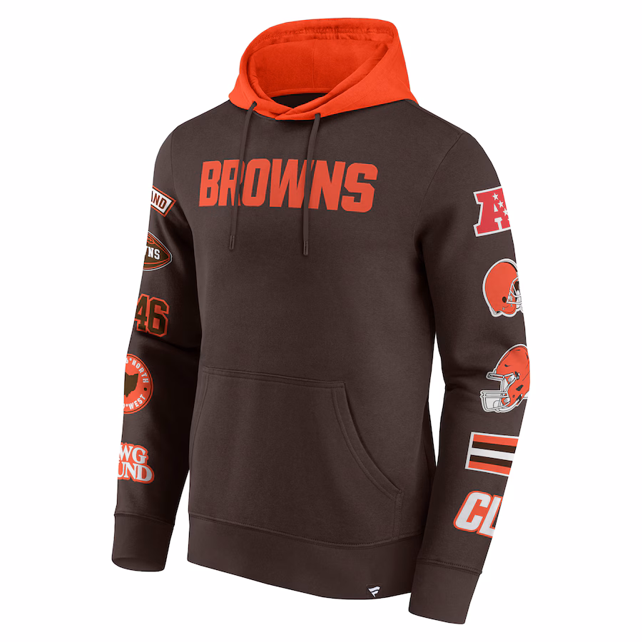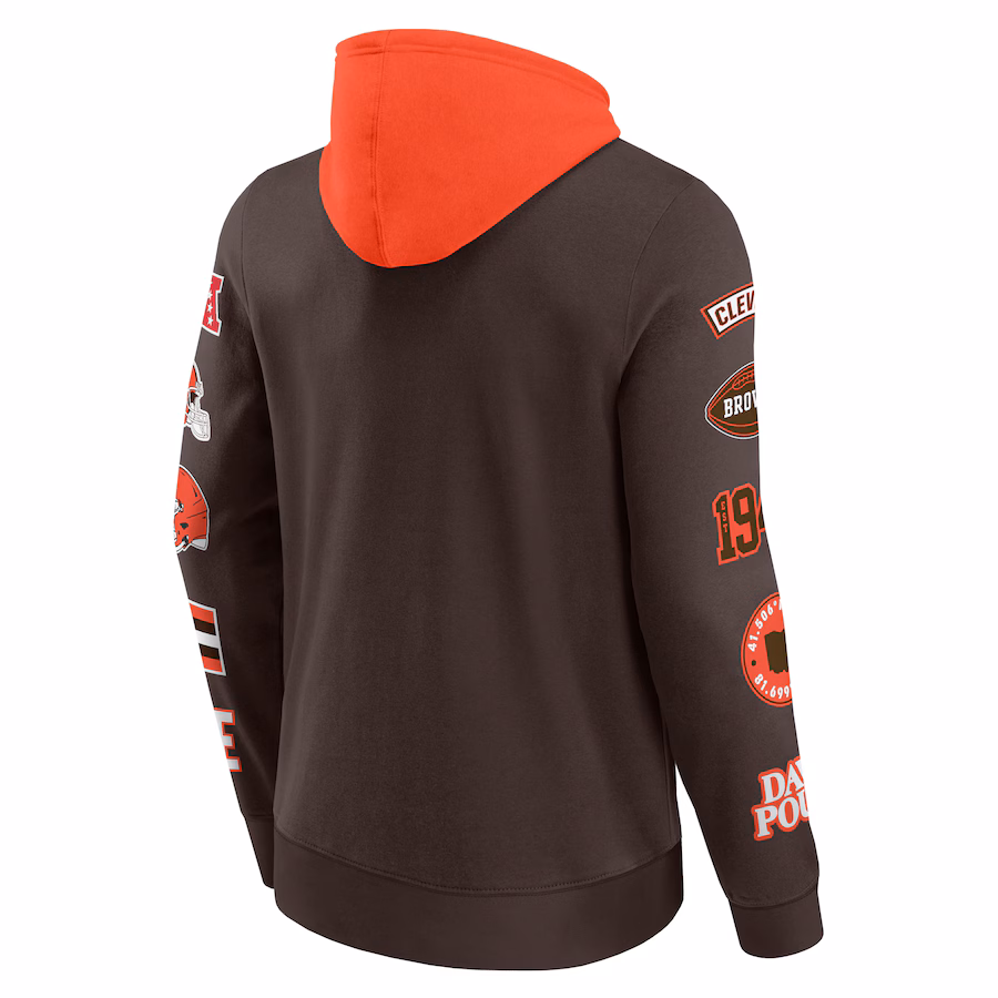 Cleveland Browns Fanatics Patched Out Pullover Hoodie – Brown/Orange