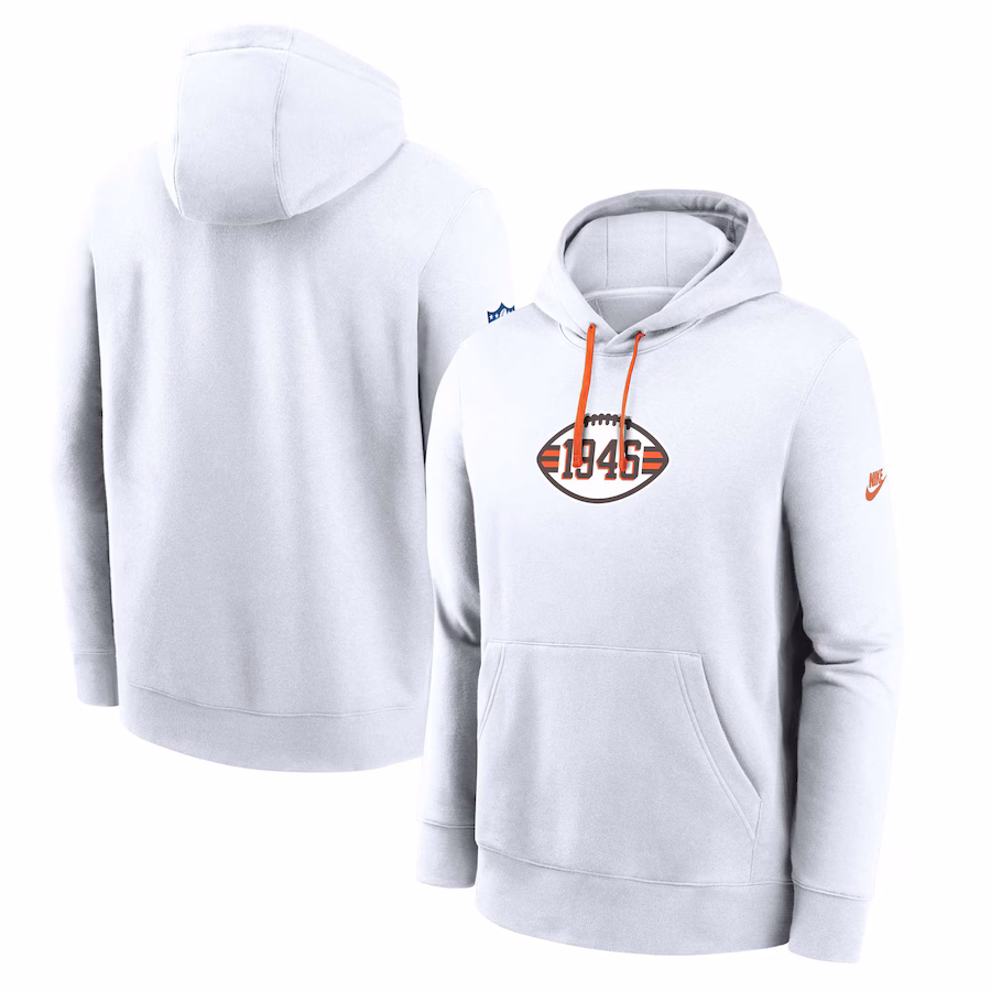 Cleveland Browns Nike 2023 Sideline Club Alternate Tri-Blend Pullover Hoodie – White