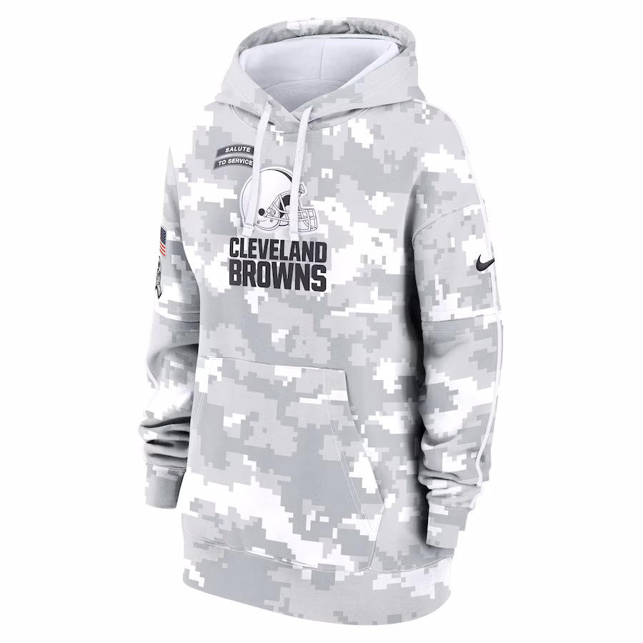 Cleveland Browns Nike Women’s 2024 Salute To Service Club Fleece Oversized Pullover Hoodie – Arctic Camo