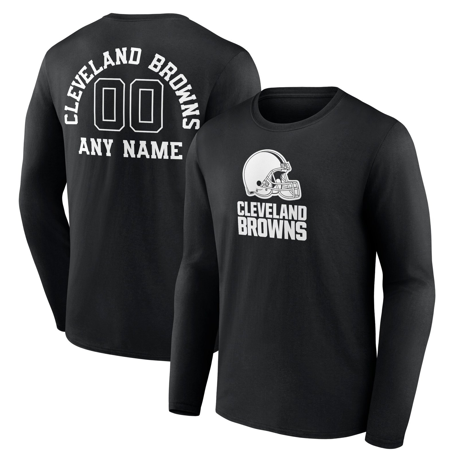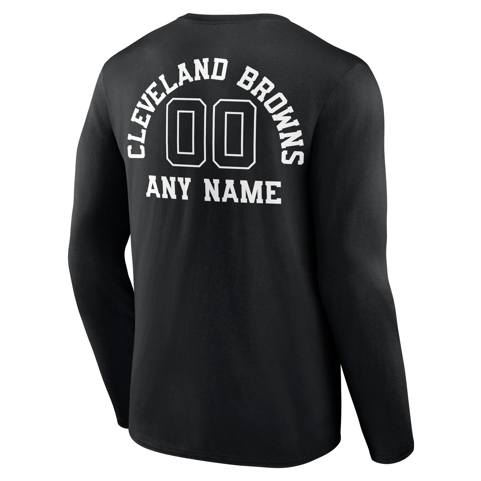 We want fans to celebrate their fandom by customizing and personalizing certain products. For these customizable products, including jerseys, we invite customers to tell us how they would like their preferred name or other text to appear by typing that text into the field indicated. However, just because a customer is able to type proposed customization text into the field and is able to complete the order through the website, not all proposed customization text will be accepted. Please note, Fanatics may reject and cancel any customization order for any reason, including for messages that are deemed offensive or inappropriate. Show your Cleveland Browns pride all season long with this Personalized Name & Number Monochrome Long Sleeve T-Shirt. This cozy tee is crafted from soft, breathable fabric for all-day comfort. The bold graphics are the perfect way to demonstrate your Cleveland Browns fandom, whether you’re at the game or just running errands around town.