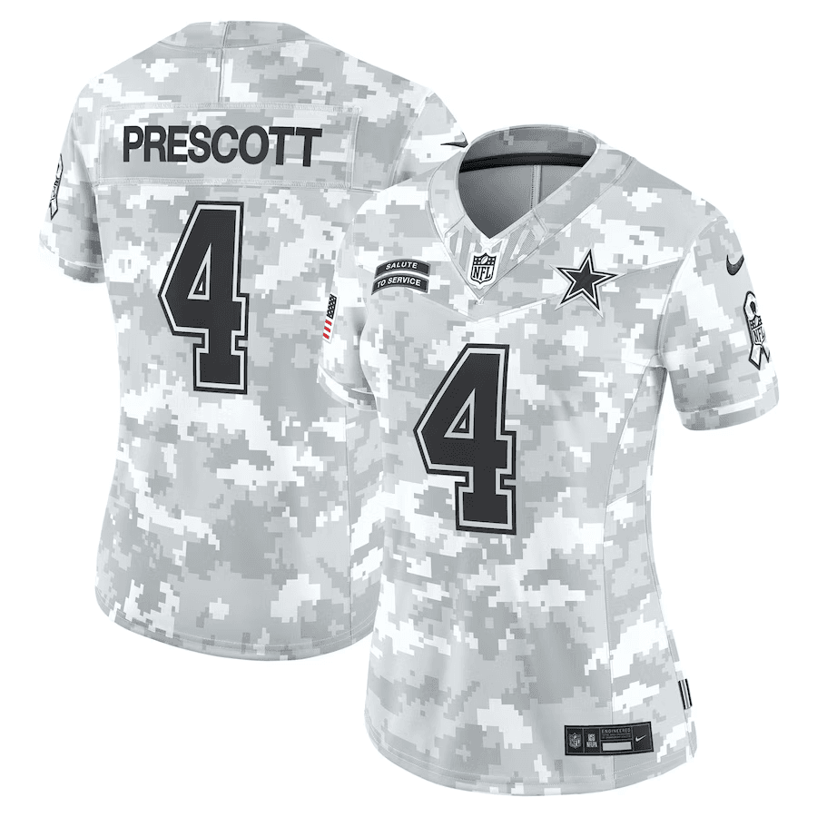 Dak Prescott Dallas Cowboys Nike Women’s 2024 Salute to Service Limited Jersey – Arctic Camo