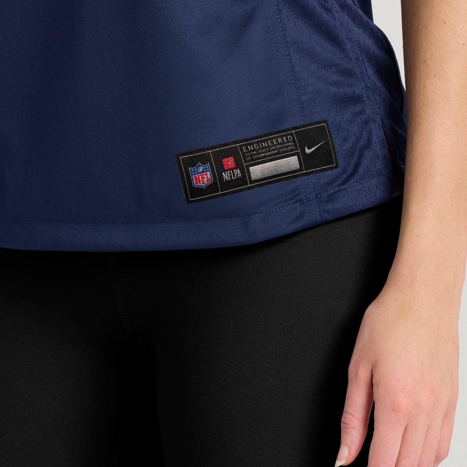 - Sewn-on NFL Shield at collar and satin twill woven jock tag at hem