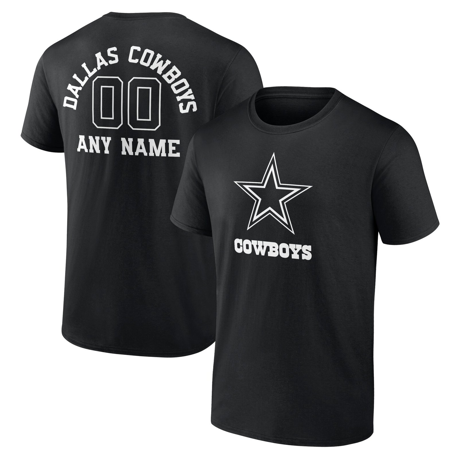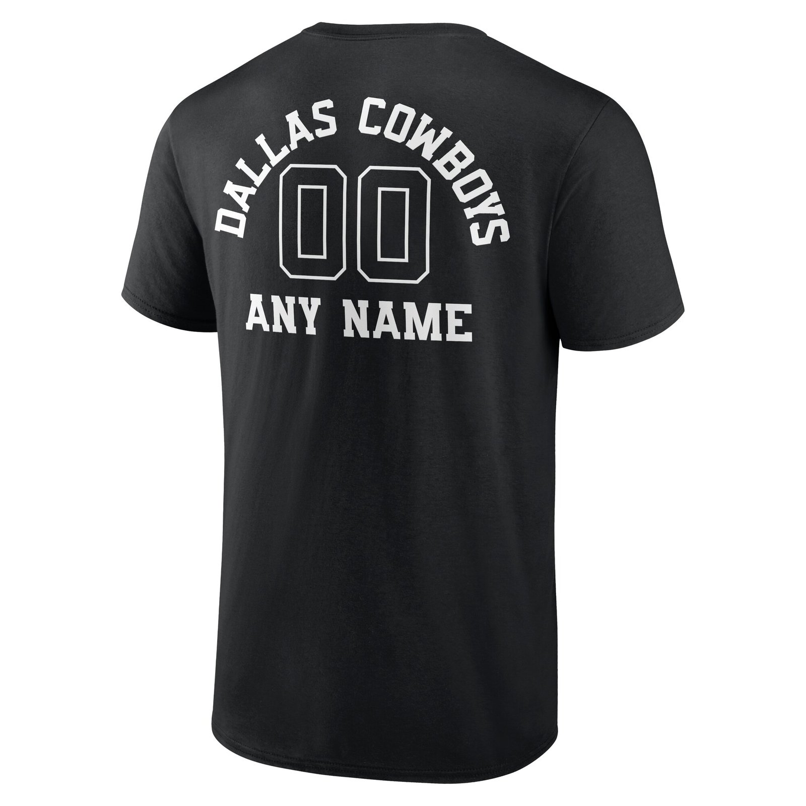 We want fans to celebrate their fandom by customizing and personalizing certain products. For these customizable products, including jerseys, we invite customers to tell us how they would like their preferred name or other text to appear by typing that text into the field indicated. However, just because a customer is able to type proposed customization text into the field and is able to complete the order through the website, not all proposed customization text will be accepted. Please note, Fanatics may reject and cancel any customization order for any reason, including for messages that are deemed offensive or inappropriate. Show your Dallas Cowboys pride all season long with this Personalized Name & Number Monochrome T-Shirt. This cozy tee is crafted from soft, breathable fabric for all-day comfort. The bold graphics are the perfect way to demonstrate your Dallas Cowboys fandom, whether you’re at the game or just running errands around town.