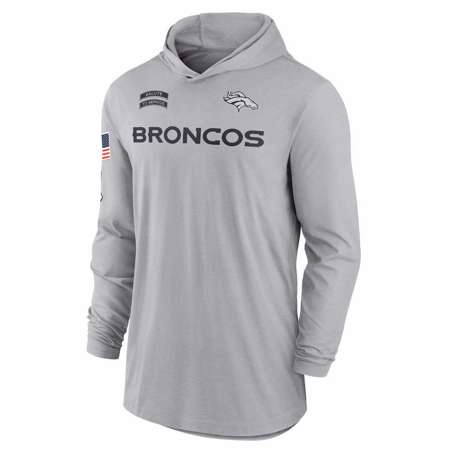 Denver Broncos Nike 2024 Salute to Service Lightweight Performance Long Sleeve Hooded T-Shirt – Gray
