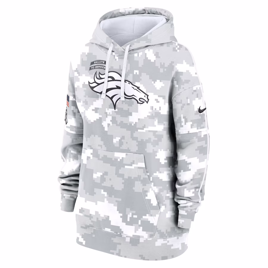 Denver Broncos Nike Women’s 2024 Salute To Service Club Fleece Oversized Pullover Hoodie – Arctic Camo