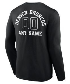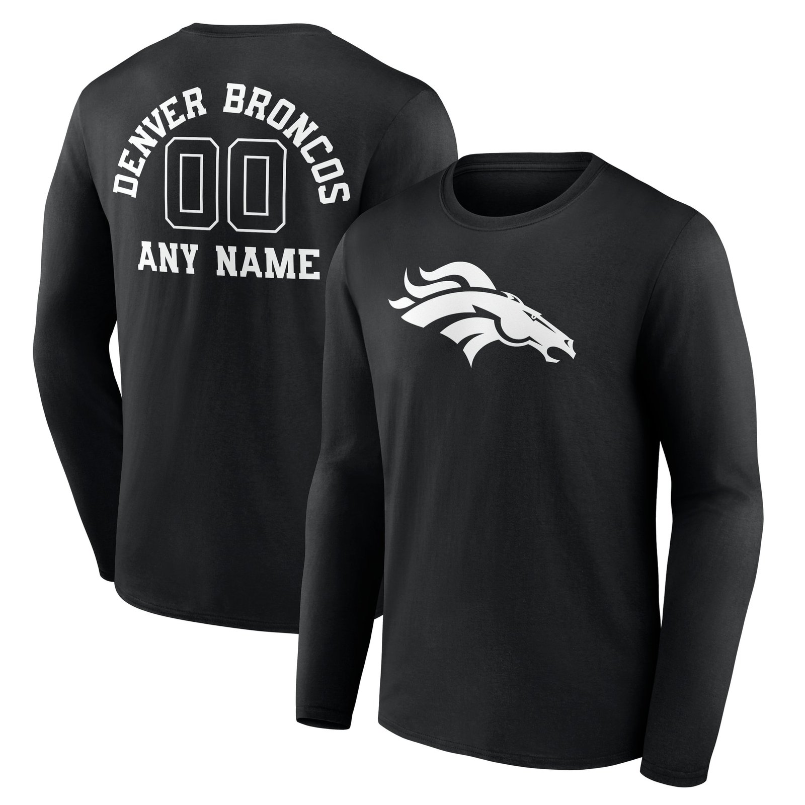 We want fans to celebrate their fandom by customizing and personalizing certain products. For these customizable products, including jerseys, we invite customers to tell us how they would like their preferred name or other text to appear by typing that text into the field indicated. However, just because a customer is able to type proposed customization text into the field and is able to complete the order through the website, not all proposed customization text will be accepted. Please note, Fanatics may reject and cancel any customization order for any reason, including for messages that are deemed offensive or inappropriate. Show your Denver Broncos pride all season long with this Personalized Name & Number Monochrome Long Sleeve T-Shirt. This cozy tee is crafted from soft, breathable fabric for all-day comfort. The bold graphics are the perfect way to demonstrate your Denver Broncos fandom, whether you’re at the game or just running errands around town.