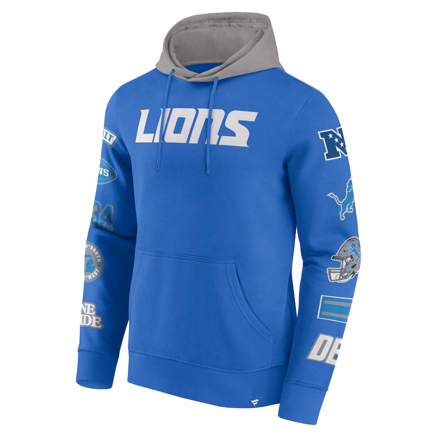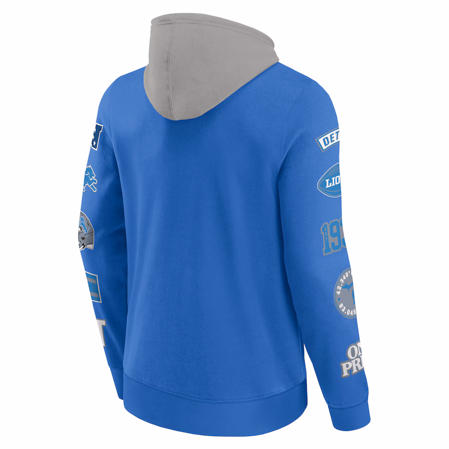 Detroit Lions Fanatics Patched Out Pullover Hoodie – Blue/Gray