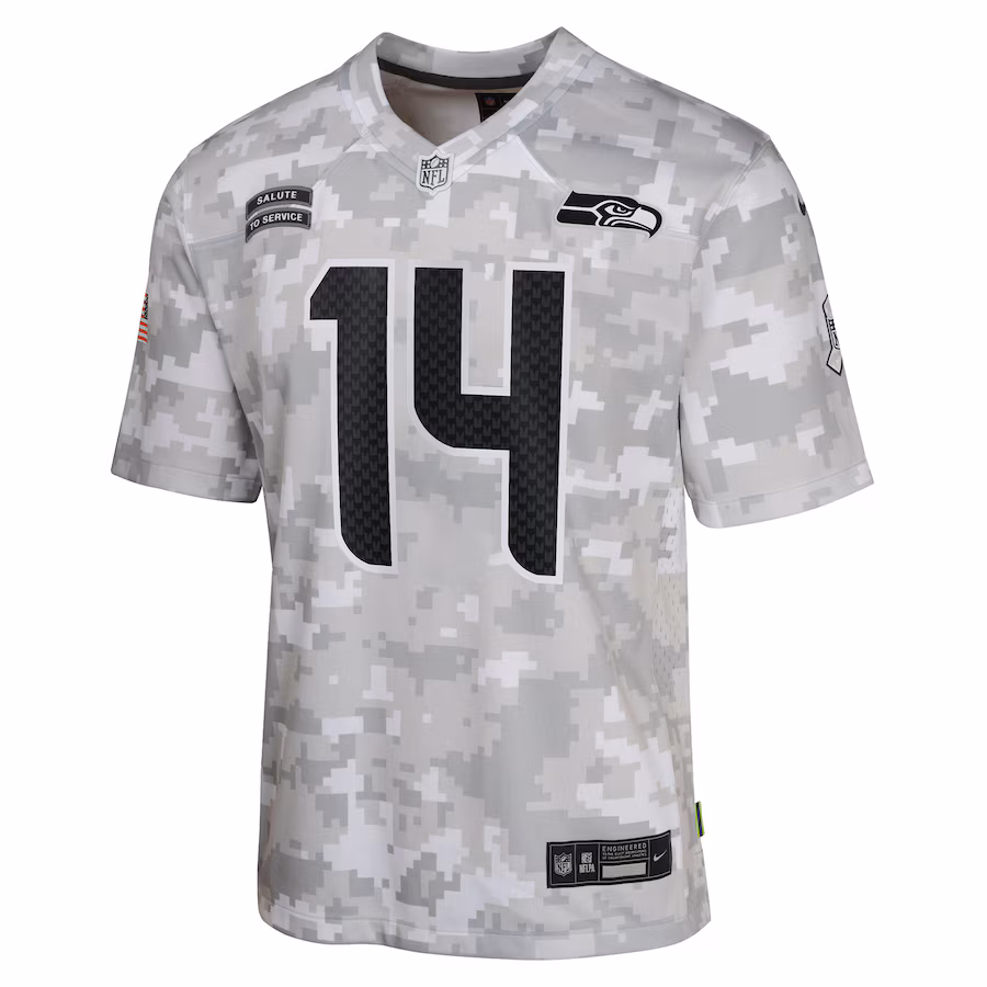 DK Metcalf Seattle Seahawks Nike Youth 2024 Salute to Service Game Jersey – Arctic Camo