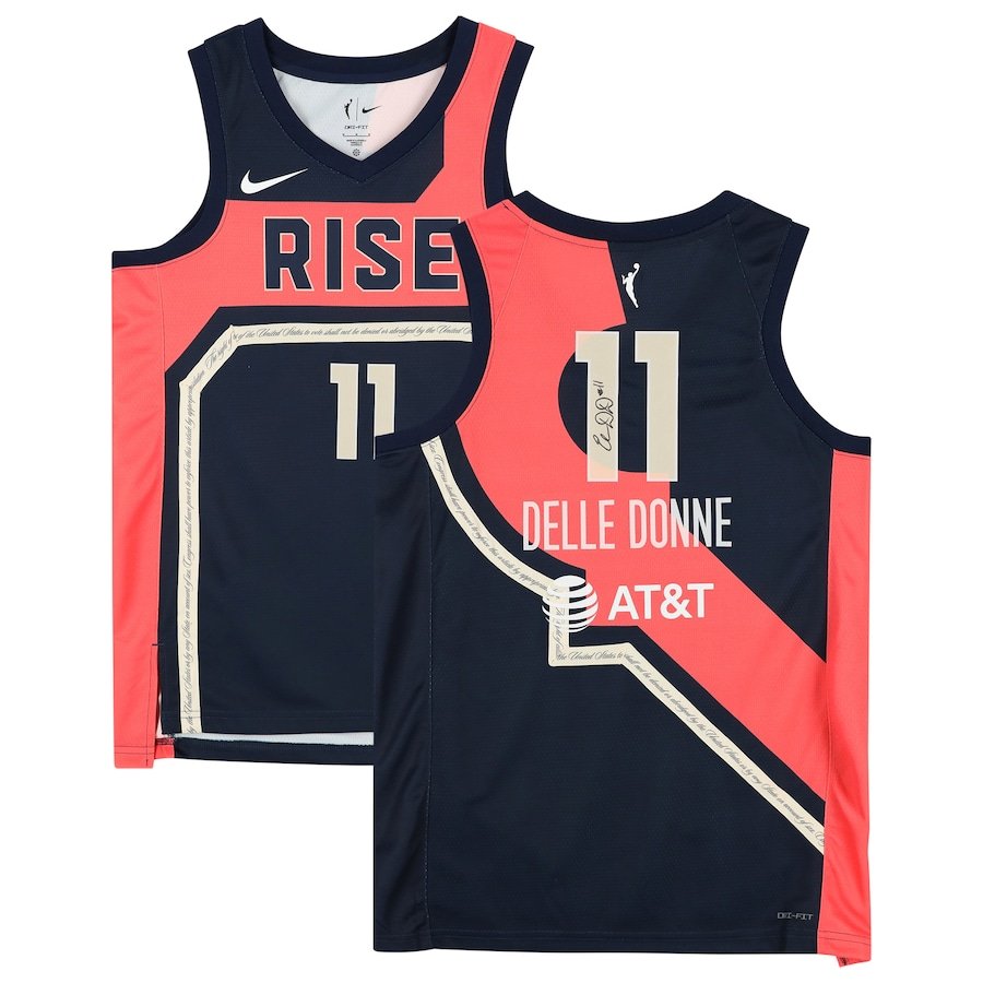 Elena Delle Donne Washington Mystics Autographed Fanatics Authentic Navy Nike 2021 Rebel Edition Victory Player Jersey
