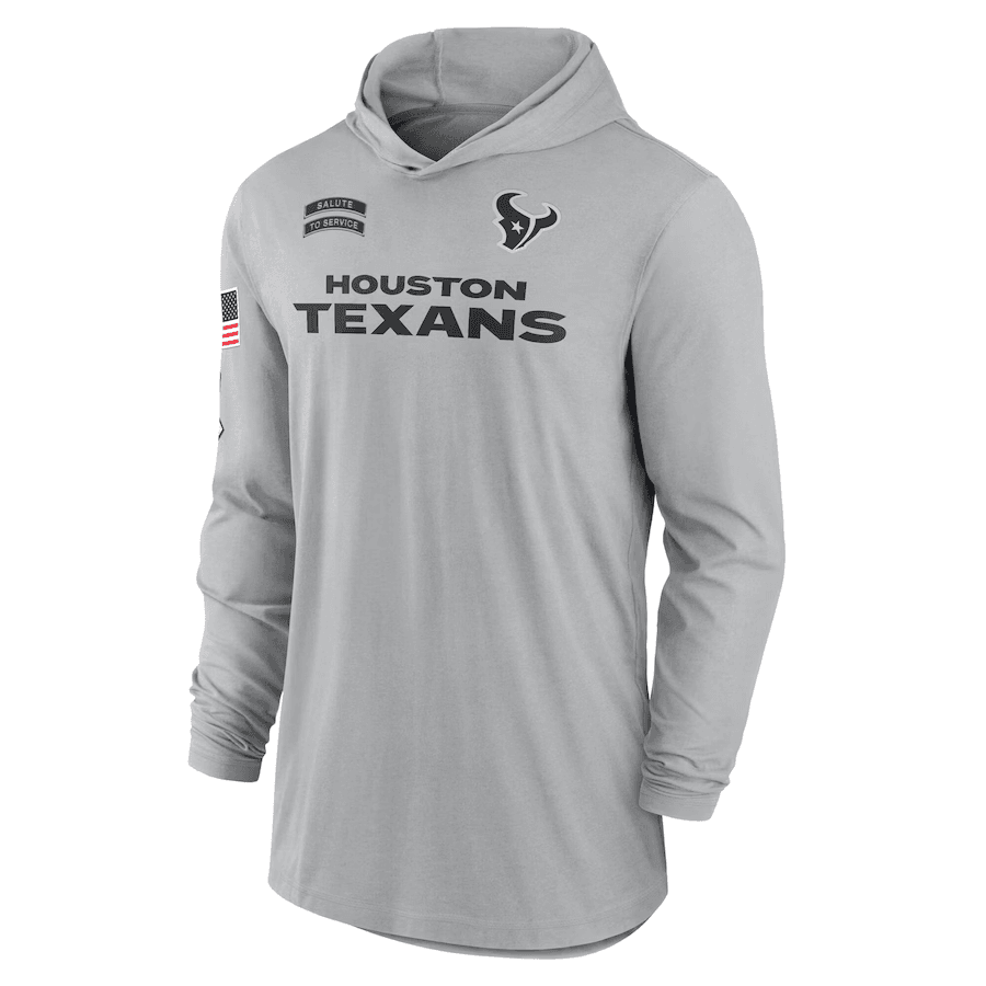 Houston Texans Nike 2024 Salute to Service Lightweight Performance Long Sleeve Hooded T-Shirt – Gray