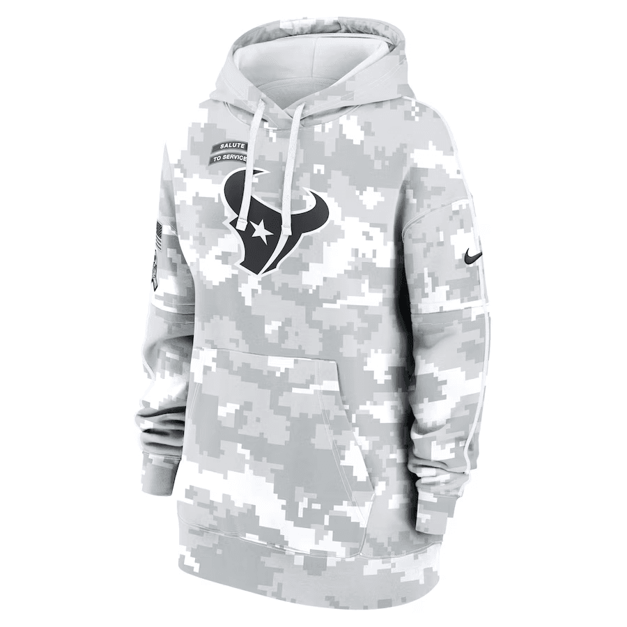 Houston Texans Nike Women’s 2024 Salute To Service Club Fleece Oversized Pullover Hoodie – Arctic Camo
