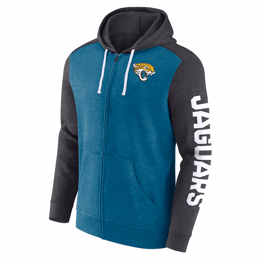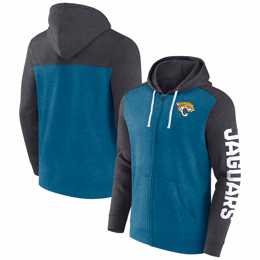 Jacksonville Jaguars Fanatics Down and Distance Full-Zip Hoodie – Heather Teal