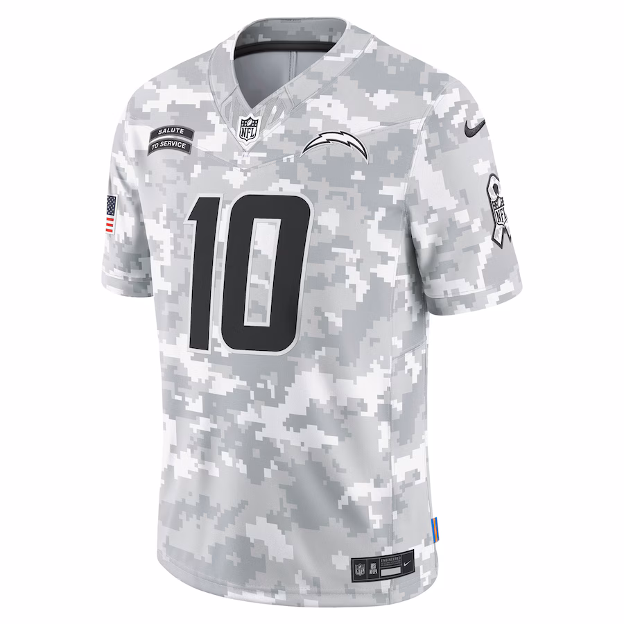Justin Herbert Los Angeles Chargers Nike 2024 Salute to Service Limited Jersey – Arctic Camo
