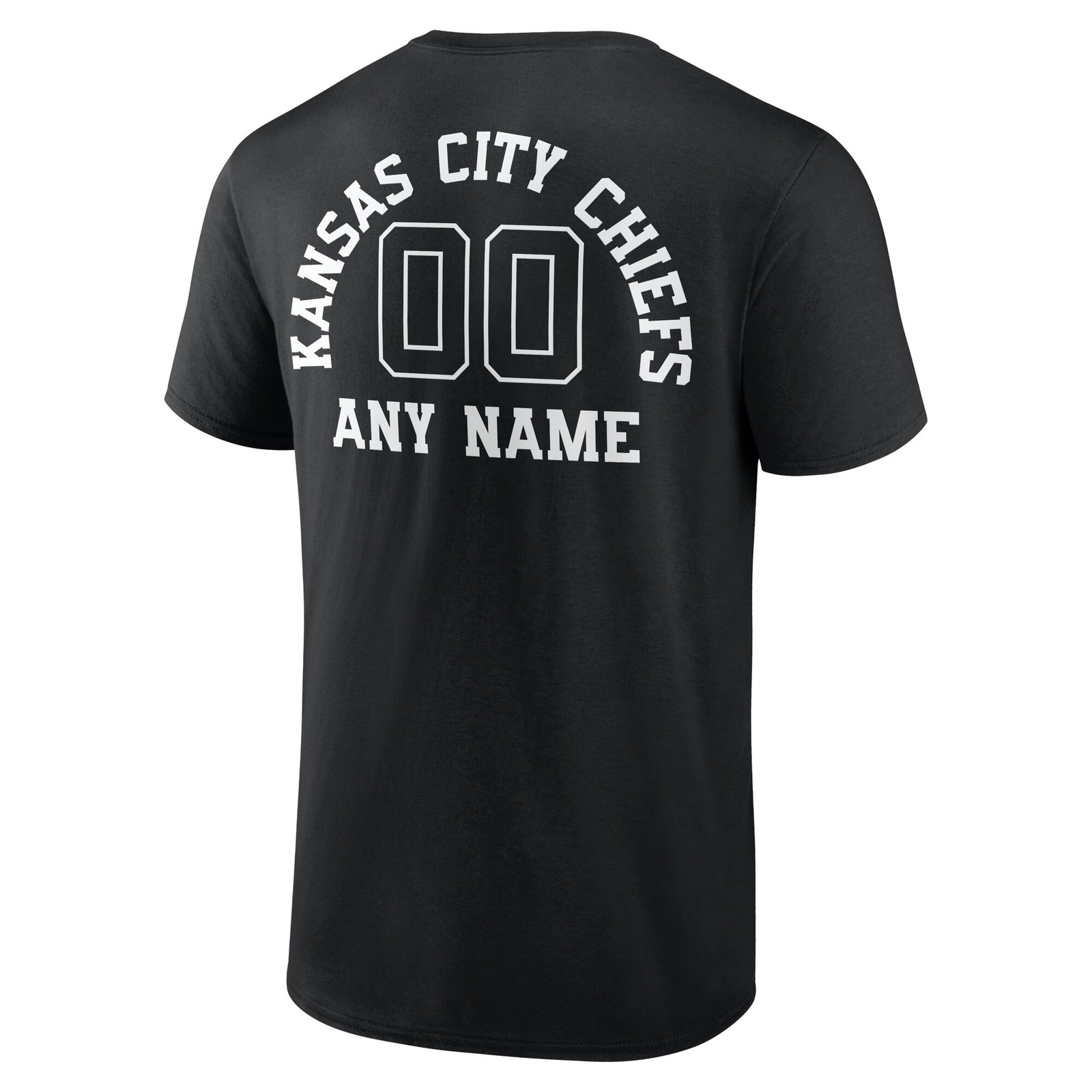We want fans to celebrate their fandom by customizing and personalizing certain products. For these customizable products, including jerseys, we invite customers to tell us how they would like their preferred name or other text to appear by typing that text into the field indicated. However, just because a customer is able to type proposed customization text into the field and is able to complete the order through the website, not all proposed customization text will be accepted. Please note, Fanatics may reject and cancel any customization order for any reason, including for messages that are deemed offensive or inappropriate. Show your Kansas City Chiefs pride all season long with this Personalized Name & Number Monochrome T-Shirt. This cozy tee is crafted from soft, breathable fabric for all-day comfort. The bold graphics are the perfect way to demonstrate your Kansas City Chiefs fandom, whether you’re at the game or just running errands around town.