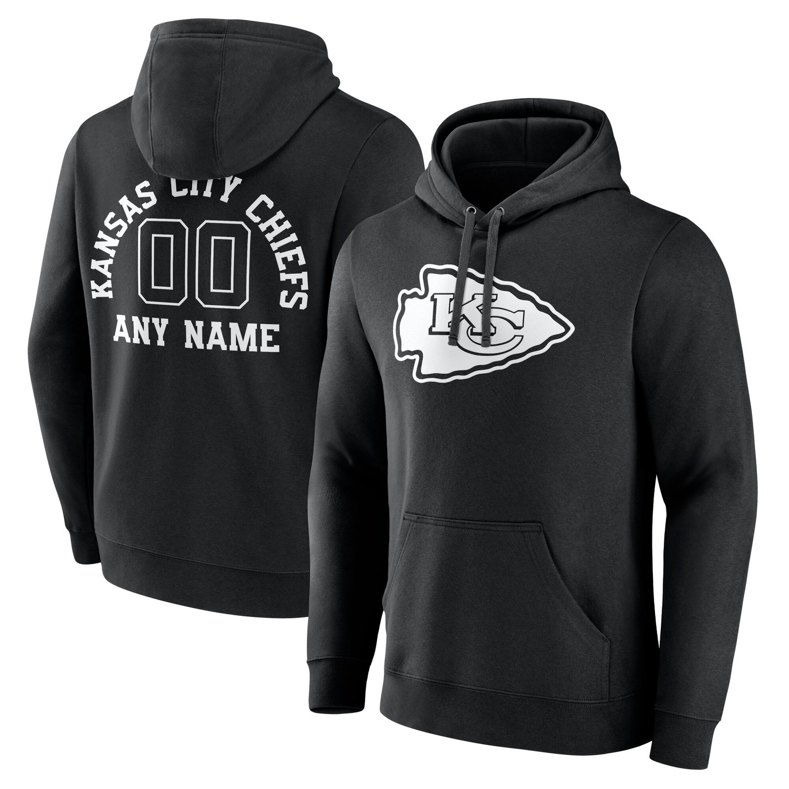 We want fans to celebrate their fandom by customizing and personalizing certain products. For these customizable products, including jerseys, we invite customers to tell us how they would like their preferred name or other text to appear by typing that text into the field indicated. However, just because a customer is able to type proposed customization text into the field and is able to complete the order through the website, not all proposed customization text will be accepted. Please note, Fanatics may reject and cancel any customization order for any reason, including for messages that are deemed offensive or inappropriate. Show your Kansas City Chiefs pride all season long with this Personalized Name & Number Pullover Hoodie. This classic hoodie is crafted from soft, cozy fabric for all-day comfort. The bold graphics are the perfect way to demonstrate your Kansas City Chiefs fandom, whether you’re at the game or just running errands around town.