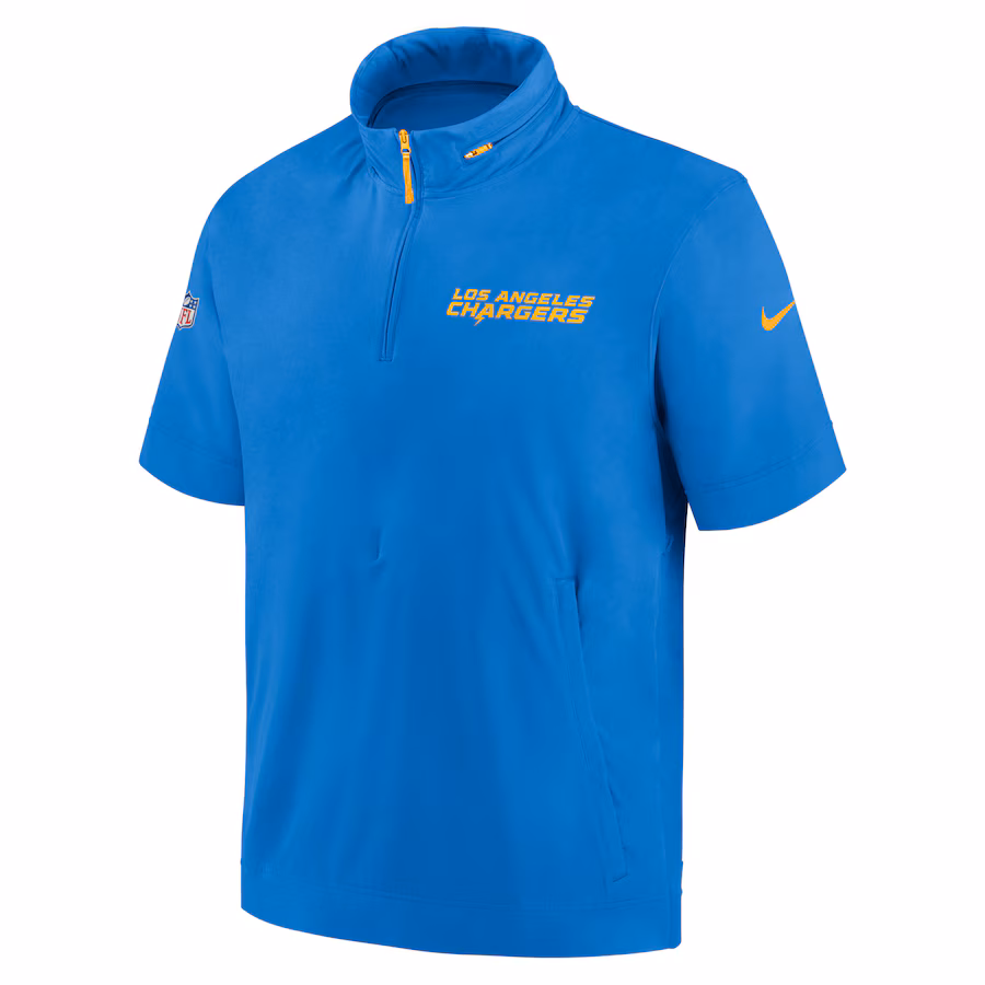 Los Angeles Chargers Nike 2024 Sideline Coach Short Sleeve Half-Zip Hoodie Jacket – Powder Blue