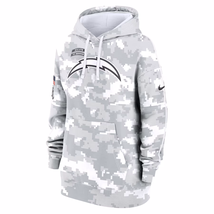 Los Angeles Chargers Nike Women’s 2024 Salute To Service Club Fleece Oversized Pullover Hoodie – Arctic Camo