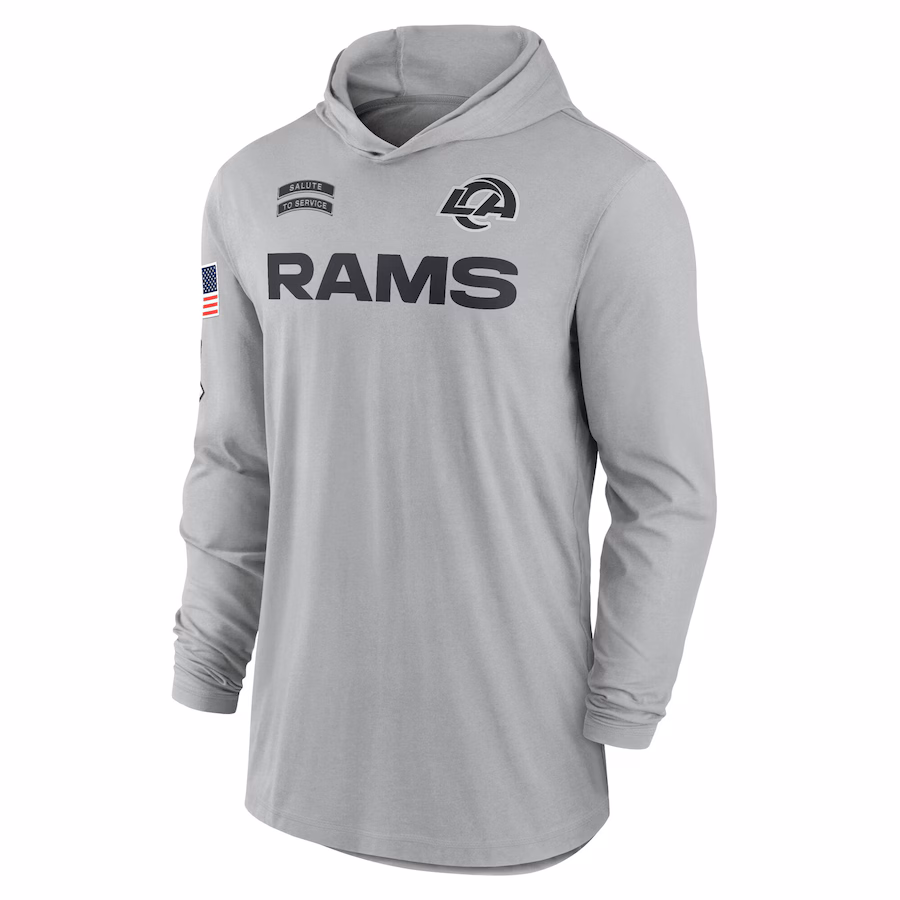 Los Angeles Rams Nike 2024 Salute to Service Lightweight Performance Long Sleeve Hooded T-Shirt – Gray