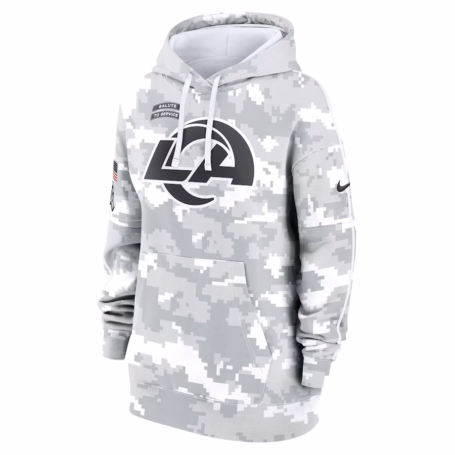 Los Angeles Rams Nike Women’s 2024 Salute To Service Club Fleece Oversized Pullover Hoodie – Arctic Camo