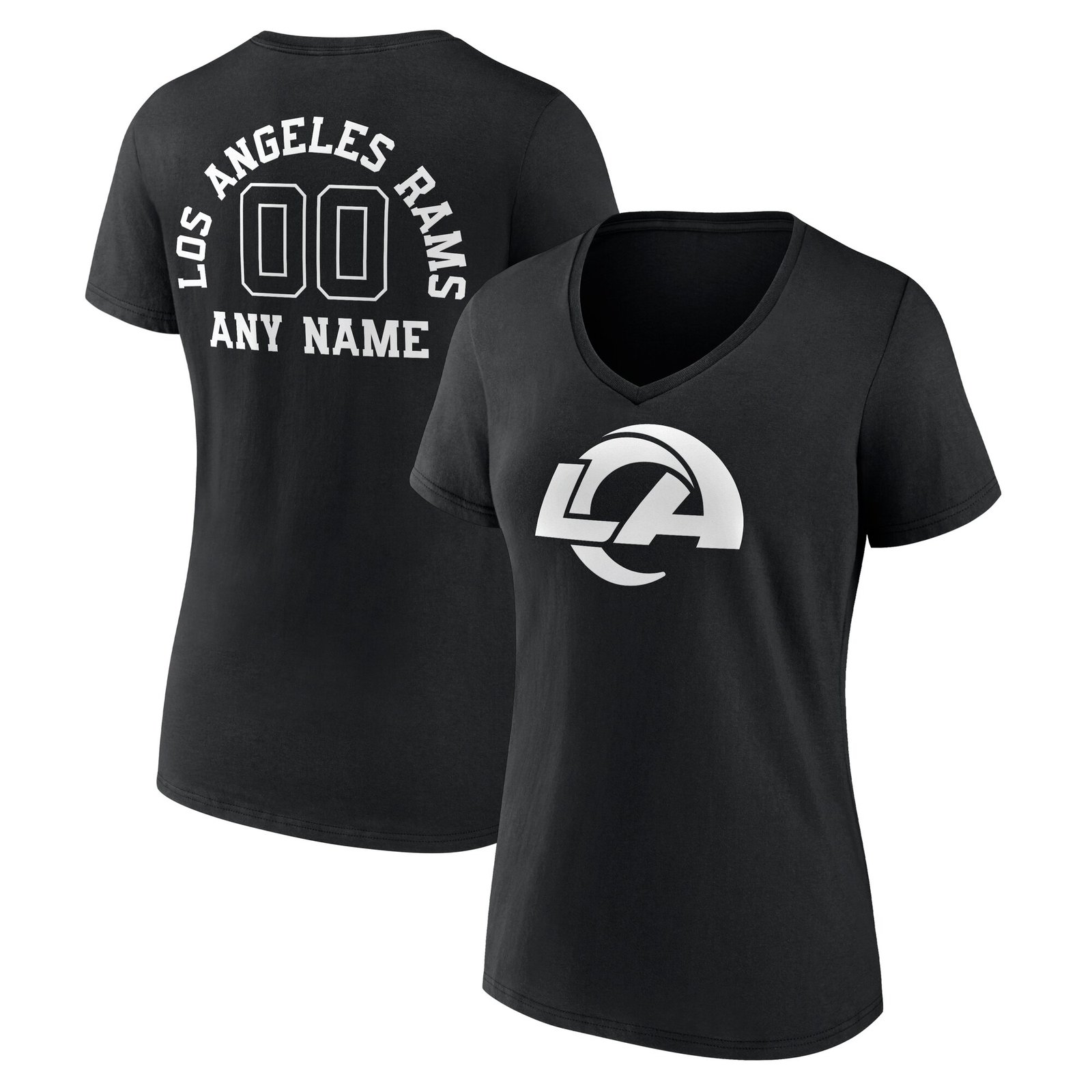 Los Angeles Rams Women’s Personalized Name & Number Monochrome V-Neck T-Shirt – Black