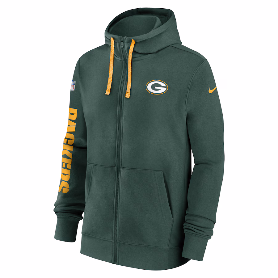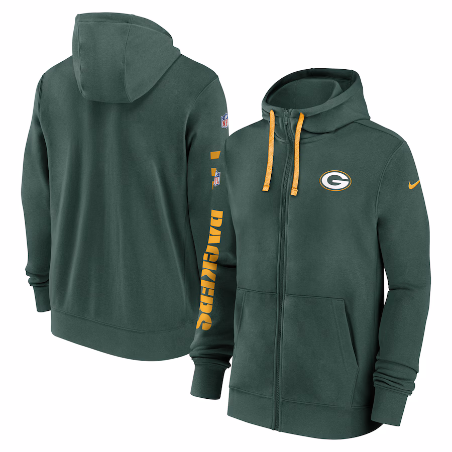 Men’s Green Bay Packers Nike Green 2024 Sideline Club Full-Zip Hoodie