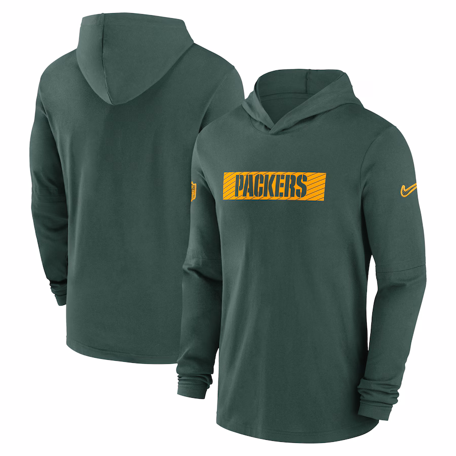 Men’s Green Bay Packers Nike Green Sideline Hoodie Performance Long Sleeve T-Shirt