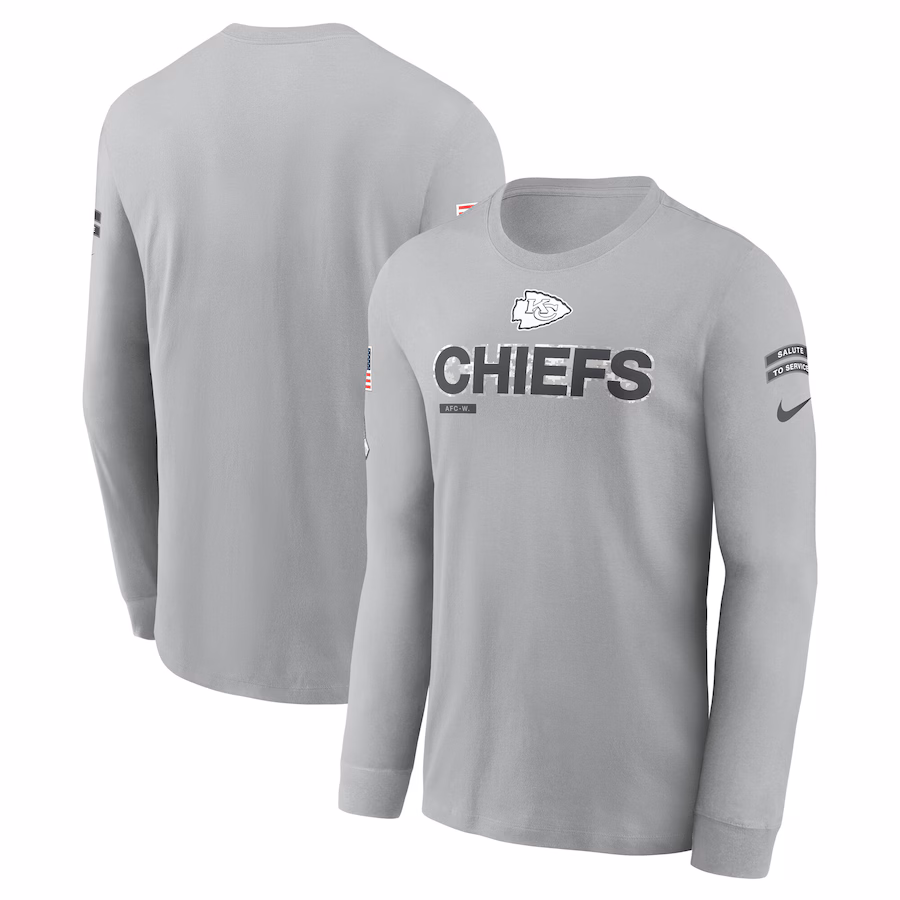 Men’s Kansas City Chiefs Nike Gray 2024 Salute To Service Long Sleeve T-Shirt