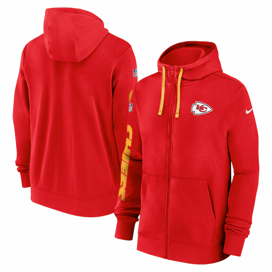 Men’s Kansas City Chiefs Nike Red 2024 Sideline Club Full-Zip Hoodie