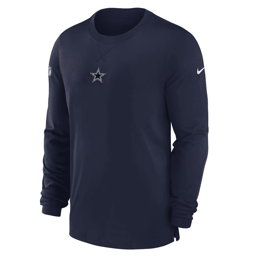 Grab the official 2023 Dallas Cowboys sideline gear from Nike. Constructed with Dri-FIT technology to keep sweat at bay, this long sleeve T-shirt is designed to provide the same level of comfort as your favorite Dallas Cowboys stars. Complete with the team logo proudly printed on the chest, this tee will instantly elevate your selection of gear this season.
