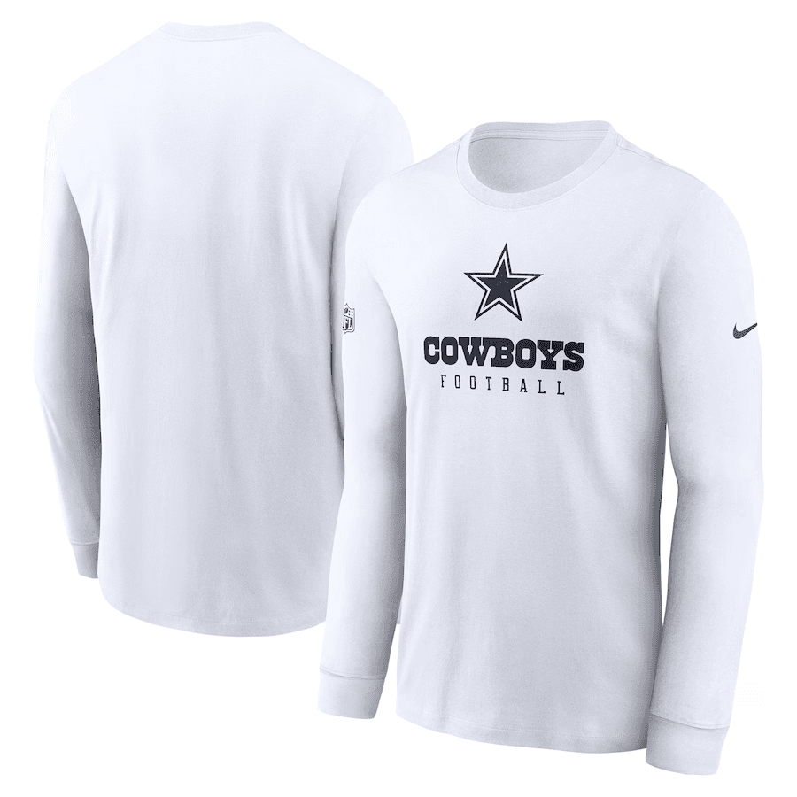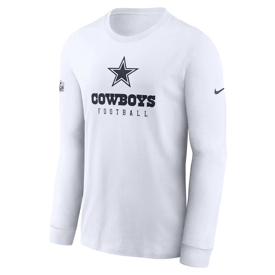 Grab the official 2023 Dallas Cowboys sideline gear from Nike. Constructed with Dri-FIT technology to keep sweat at bay, this long sleeve T-shirt is designed to provide the same level of comfort as your favorite Dallas Cowboys stars. Complete with the team logo proudly printed on the chest, this tee will instantly elevate your selection of gear this season.