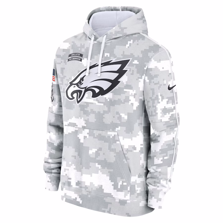Men’s Philadelphia Eagles Nike Arctic Camo 2024 Salute to Service Club Fleece Pullover Hoodie