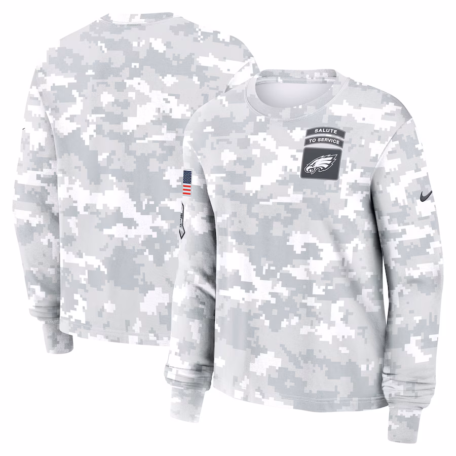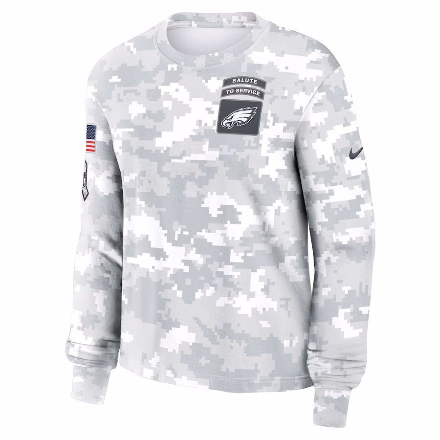 Men’s Philadelphia Eagles Nike Arctic Camo 2024 Salute To Service Long Sleeve T-Shirt
