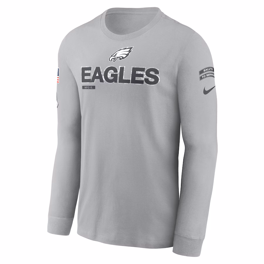 Men’s Philadelphia Eagles Nike Gray 2024 Salute To Service Long Sleeve T-Shirt
