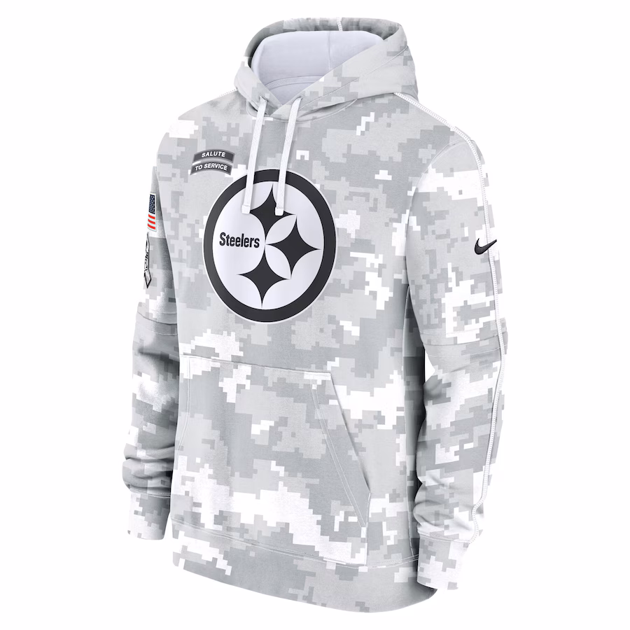 Men’s Pittsburgh Steelers Nike Arctic Camo 2024 Salute to Service Club Fleece Pullover Hoodie