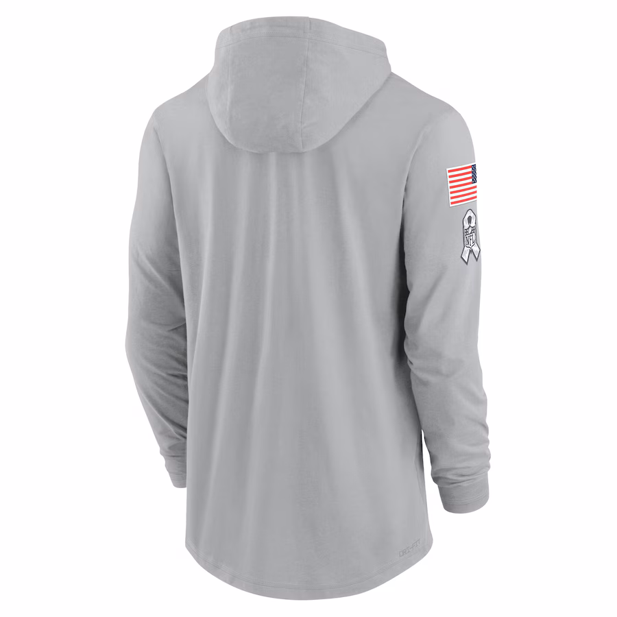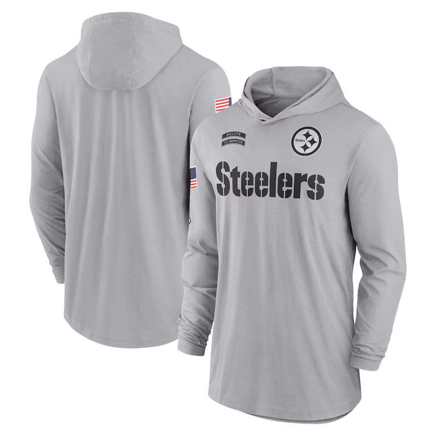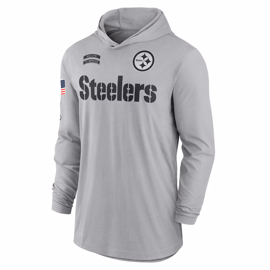 Men’s Pittsburgh Steelers Nike Gray 2024 Salute to Service Lightweight Performance Long Sleeve Hooded T-Shirt