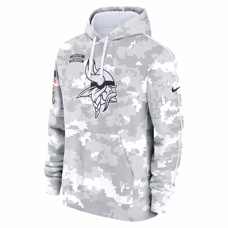 Minnesota Vikings Nike Youth 2024 Salute To Service Pullover Hoodie – White/Gray