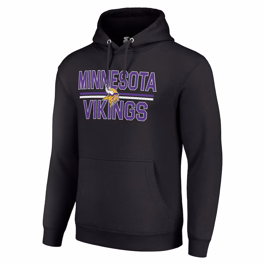 Minnesota Vikings Starter Unisex Team Mesh Print Graphic Tri-Blend Pullover Hoodie – Black