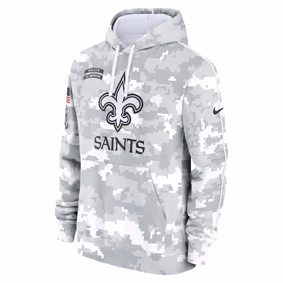 New Orleans Saints Nike 2024 Salute to Service Club Fleece Pullover Hoodie – Arctic Camo