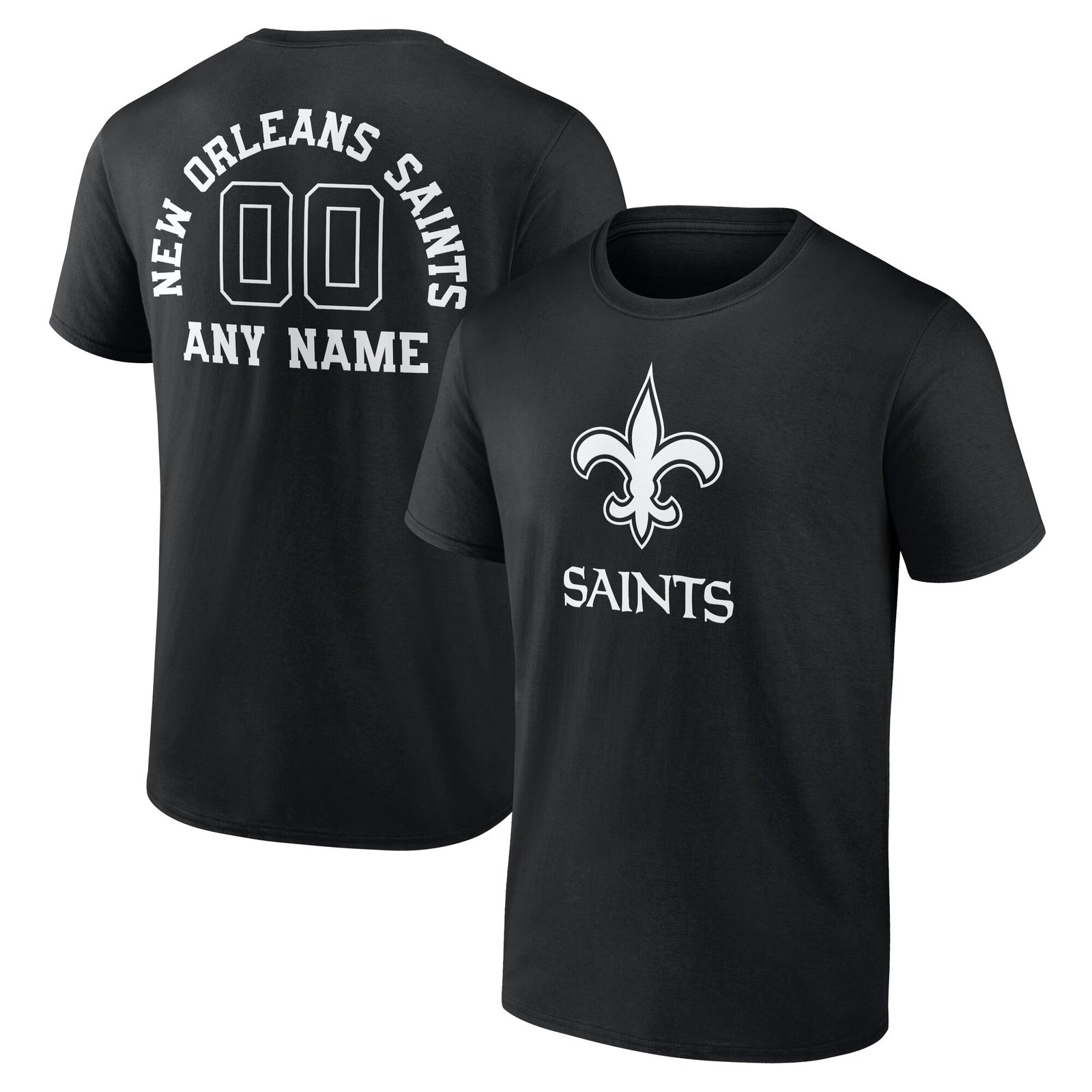 We want fans to celebrate their fandom by customizing and personalizing certain products. For these customizable products, including jerseys, we invite customers to tell us how they would like their preferred name or other text to appear by typing that text into the field indicated. However, just because a customer is able to type proposed customization text into the field and is able to complete the order through the website, not all proposed customization text will be accepted. Please note, Fanatics may reject and cancel any customization order for any reason, including for messages that are deemed offensive or inappropriate. Show your New Orleans Saints pride all season long with this Personalized Name & Number Monochrome T-Shirt. This cozy tee is crafted from soft, breathable fabric for all-day comfort. The bold graphics are the perfect way to demonstrate your New Orleans Saints fandom, whether you’re at the game or just running errands around town.