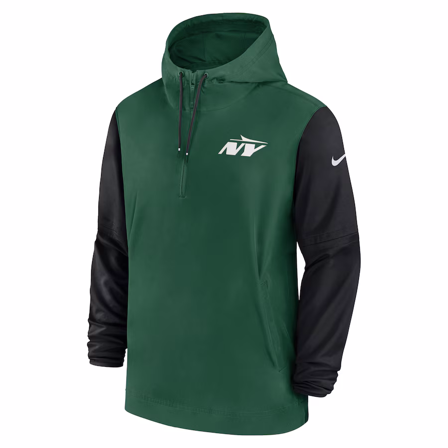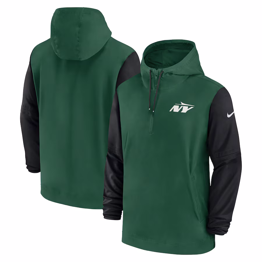 New York Jets Nike 2024/25 Sideline Pre-Game Player 1/2-Zip Hoodie Jacket – Green/Black