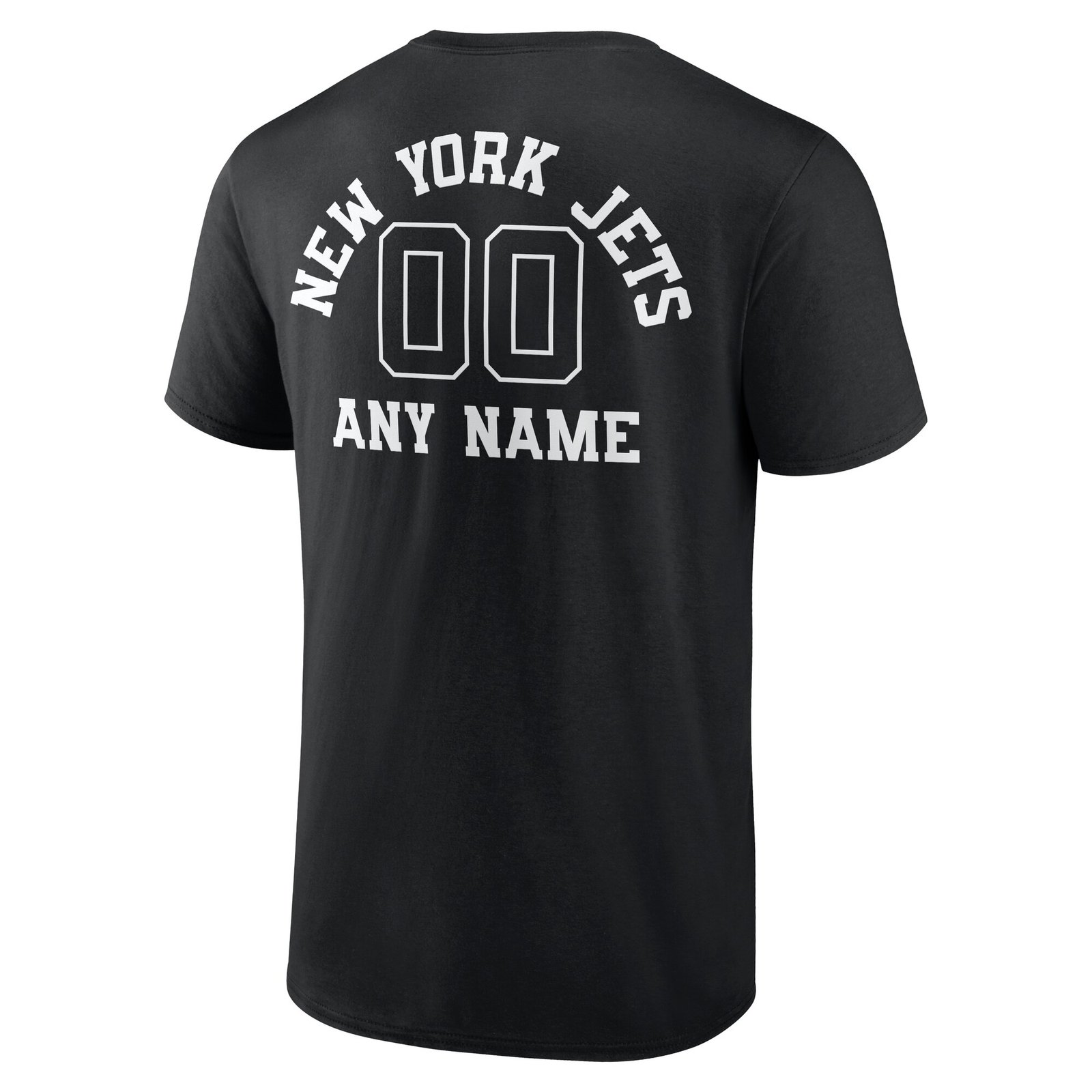 We want fans to celebrate their fandom by customizing and personalizing certain products. For these customizable products, including jerseys, we invite customers to tell us how they would like their preferred name or other text to appear by typing that text into the field indicated. However, just because a customer is able to type proposed customization text into the field and is able to complete the order through the website, not all proposed customization text will be accepted. Please note, Fanatics may reject and cancel any customization order for any reason, including for messages that are deemed offensive or inappropriate. Show your New York Jets pride all season long with this Personalized Name & Number Monochrome T-Shirt. This cozy tee is crafted from soft, breathable fabric for all-day comfort. The bold graphics are the perfect way to demonstrate your New York Jets fandom, whether you’re at the game or just running errands around town.