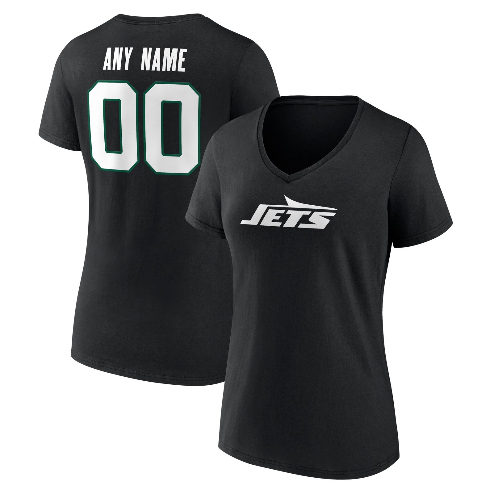 New York Jets Women’s Team Authentic Custom V-Neck T-Shirt – Black